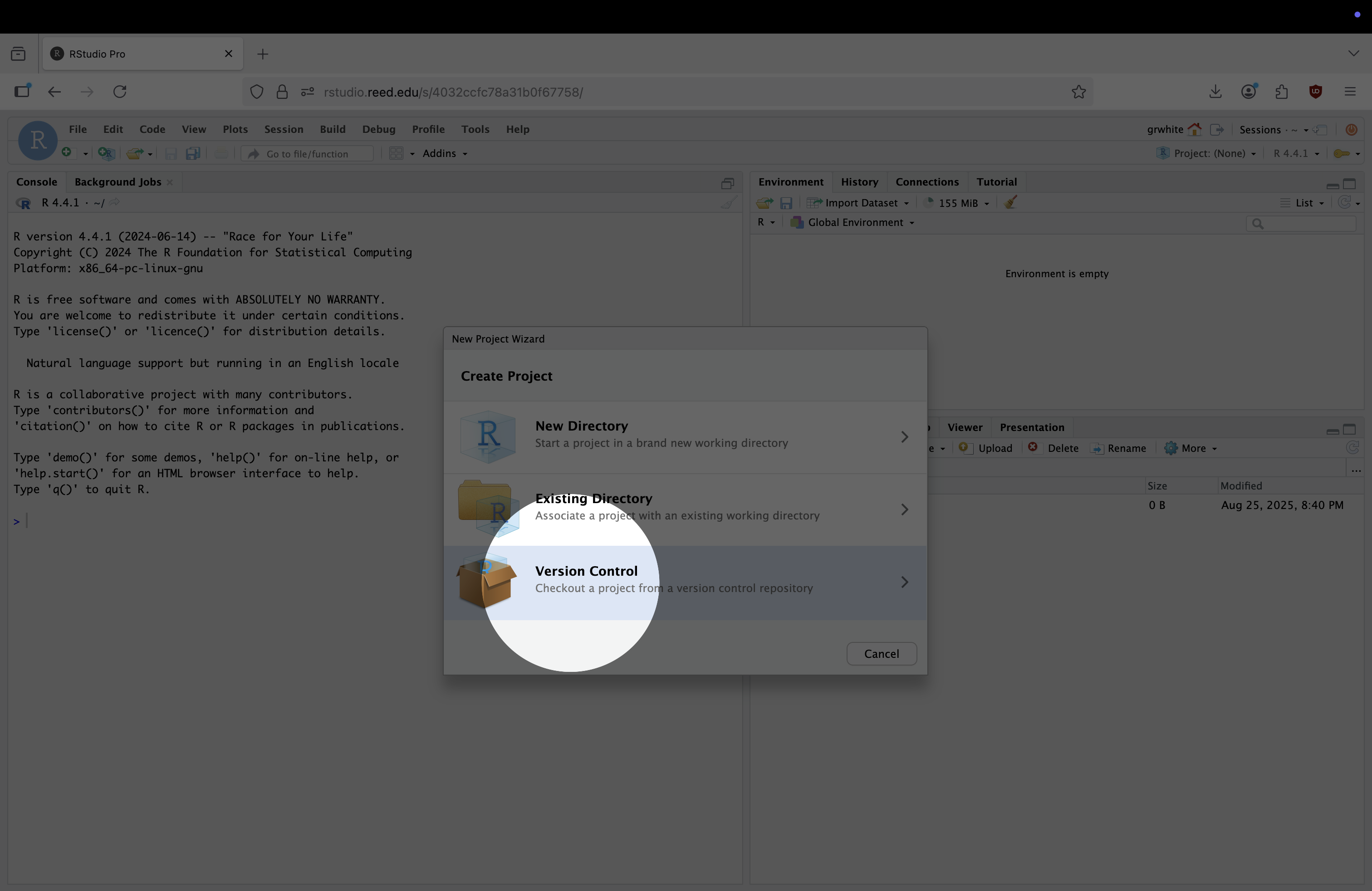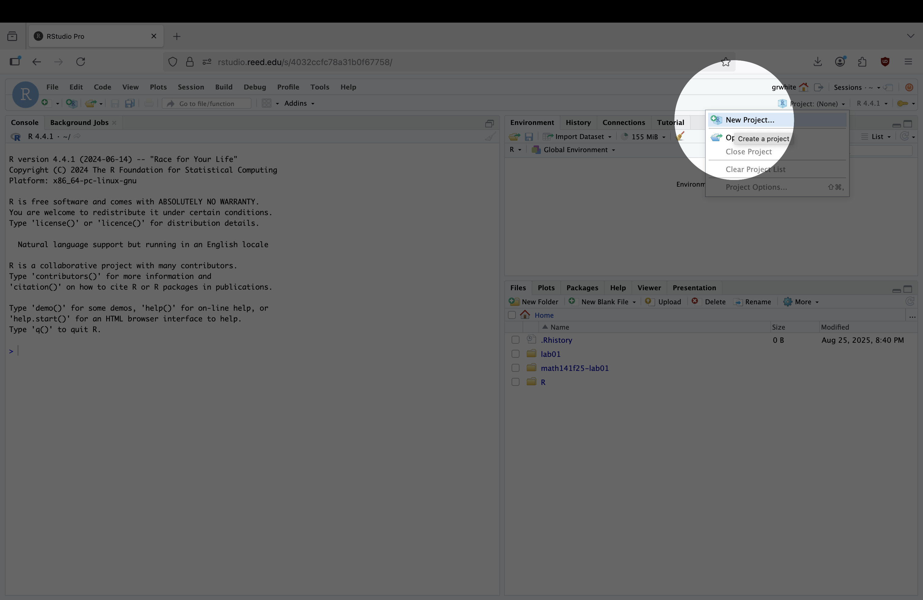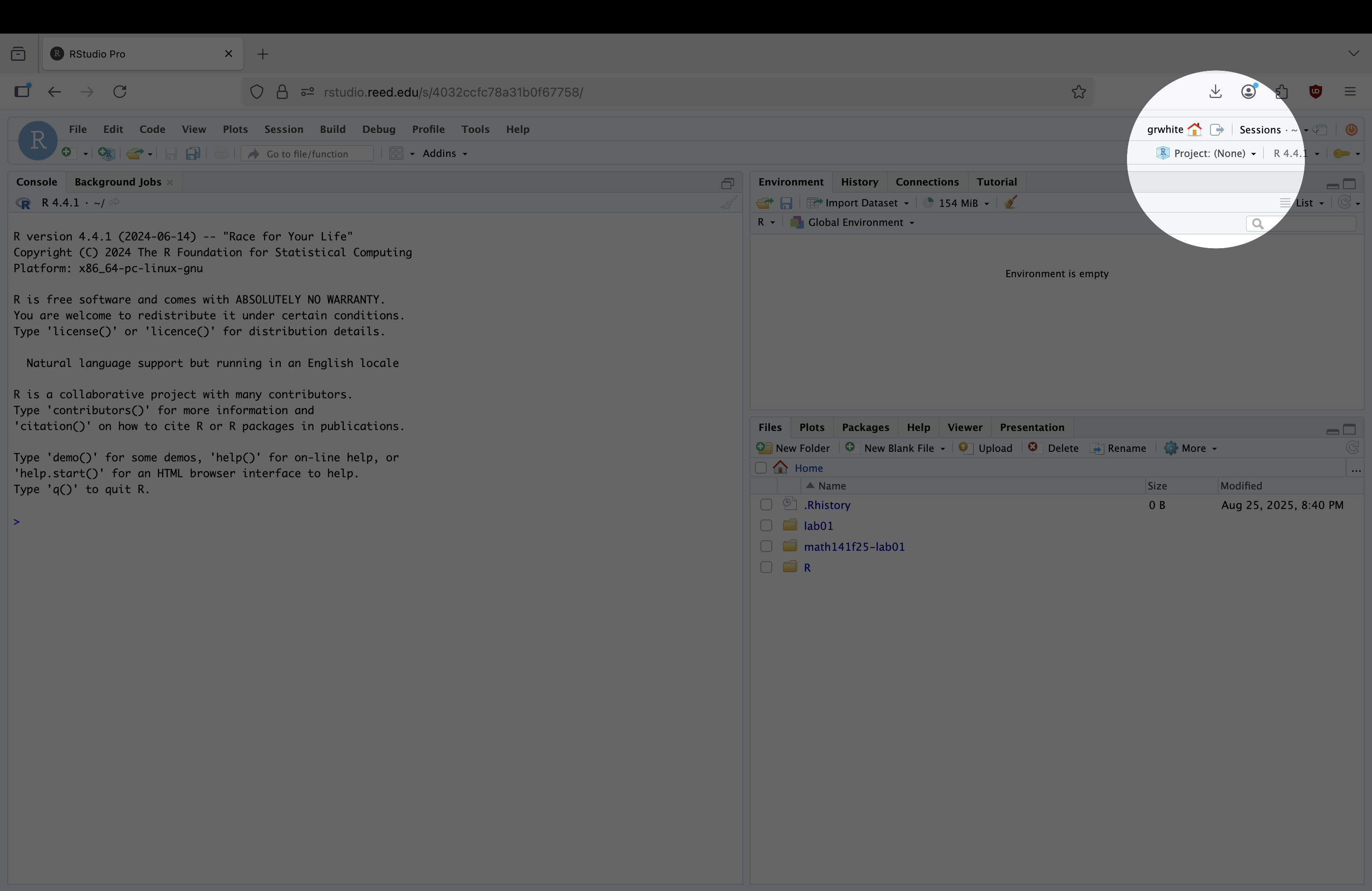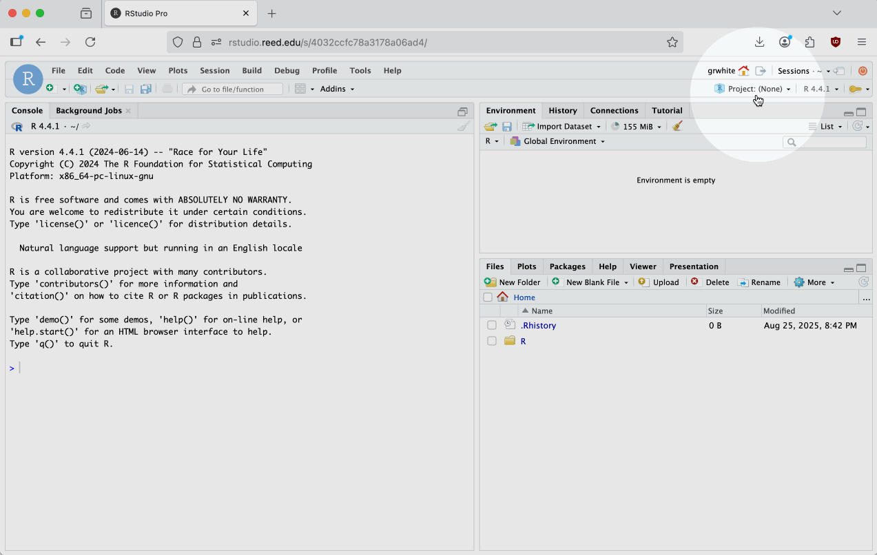 - Use your web browser to navigate to the Reed RStudio server at https://rstudio.reed.edu.