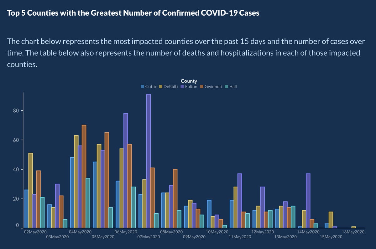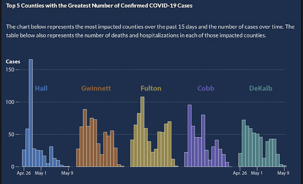 Alberto Cairo, a journalist and designer, created the second graph of the Georgia COVID-19 data: