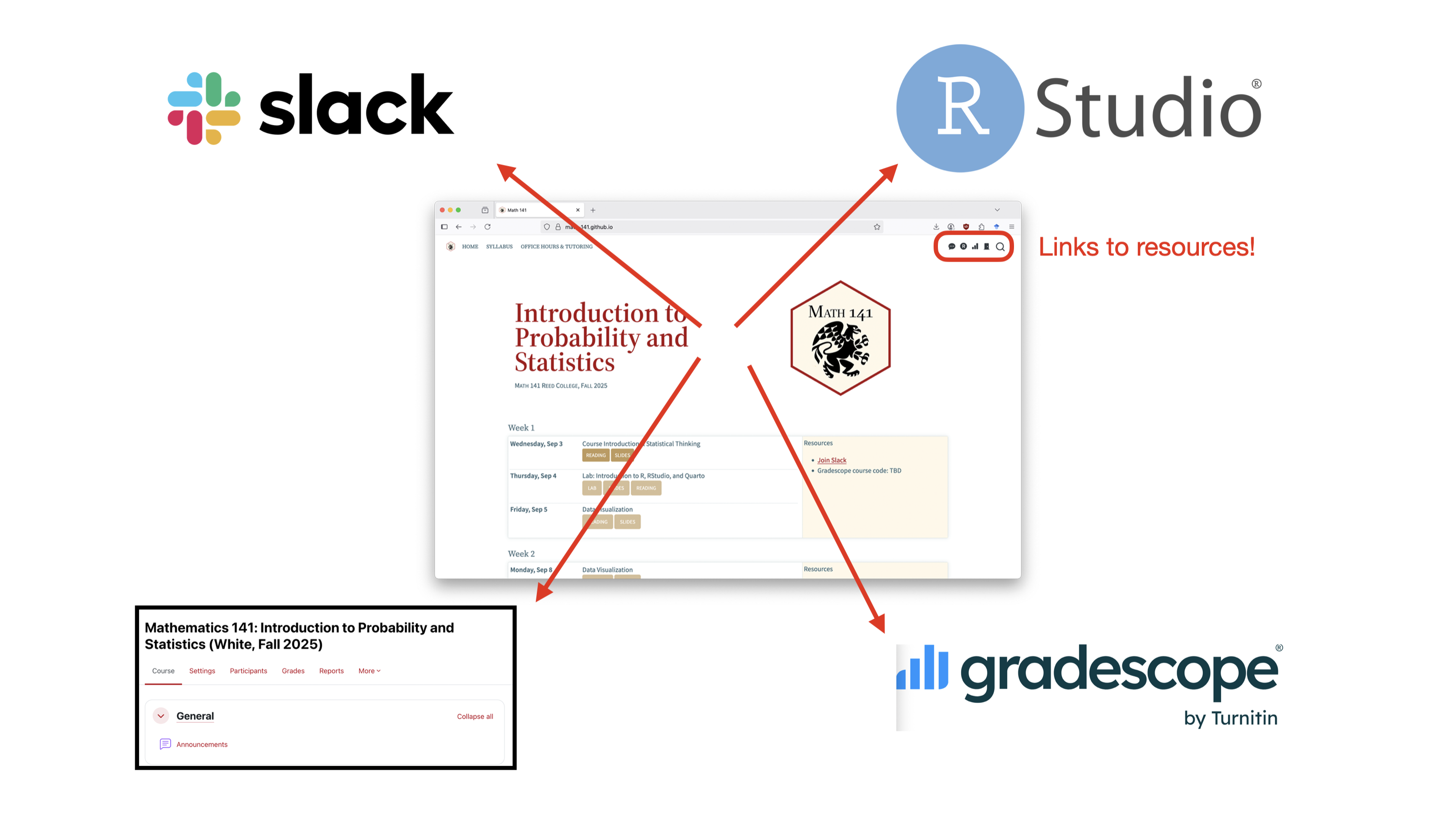 We’ll use a few other resources to navigate Math 141, but all other tools can be accessed by the quick links in the course website!