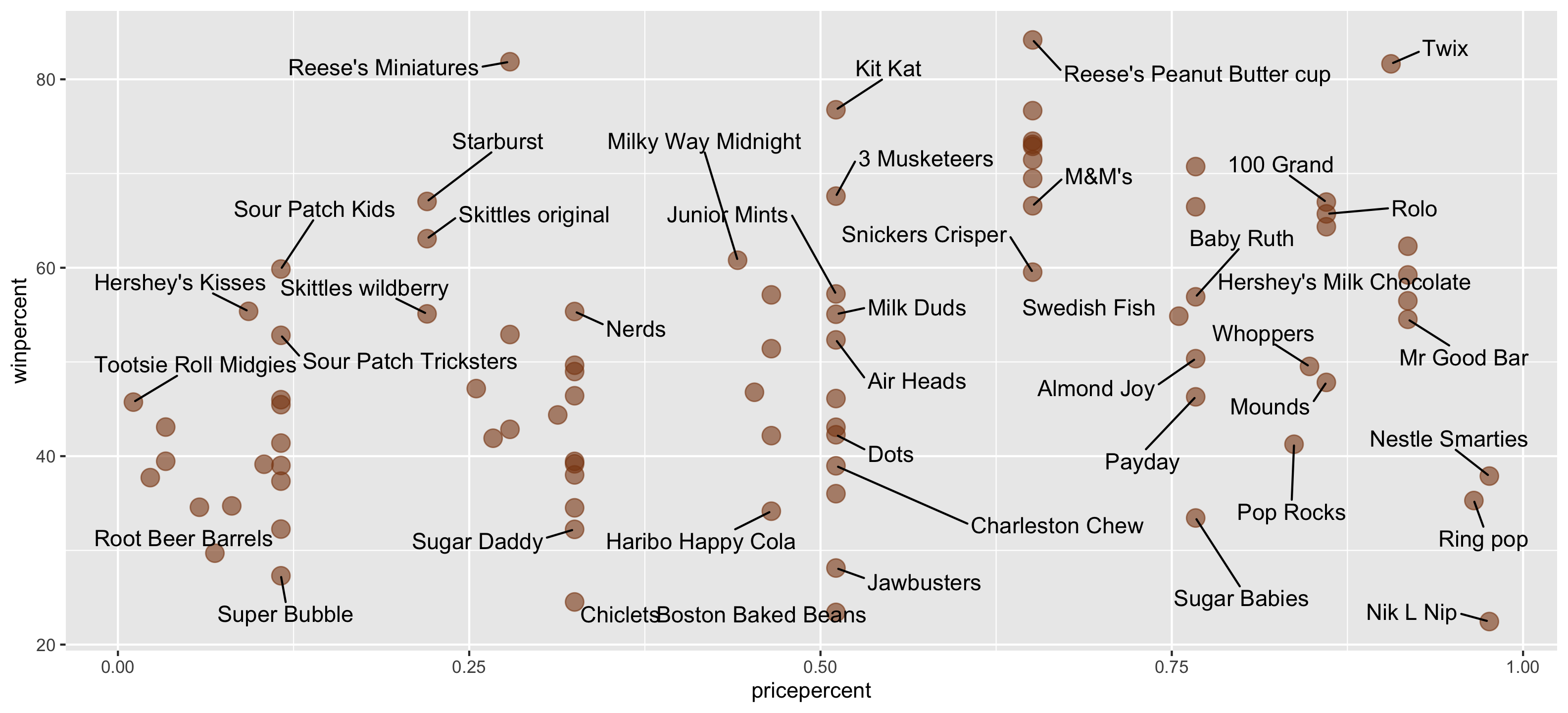 $ peanutyalmondy <dbl> 0, 0, 0, 0, 0, 1, 1, 1, 0, 0, 0, 0, 0, 0, 0, 0, 0, 0,…