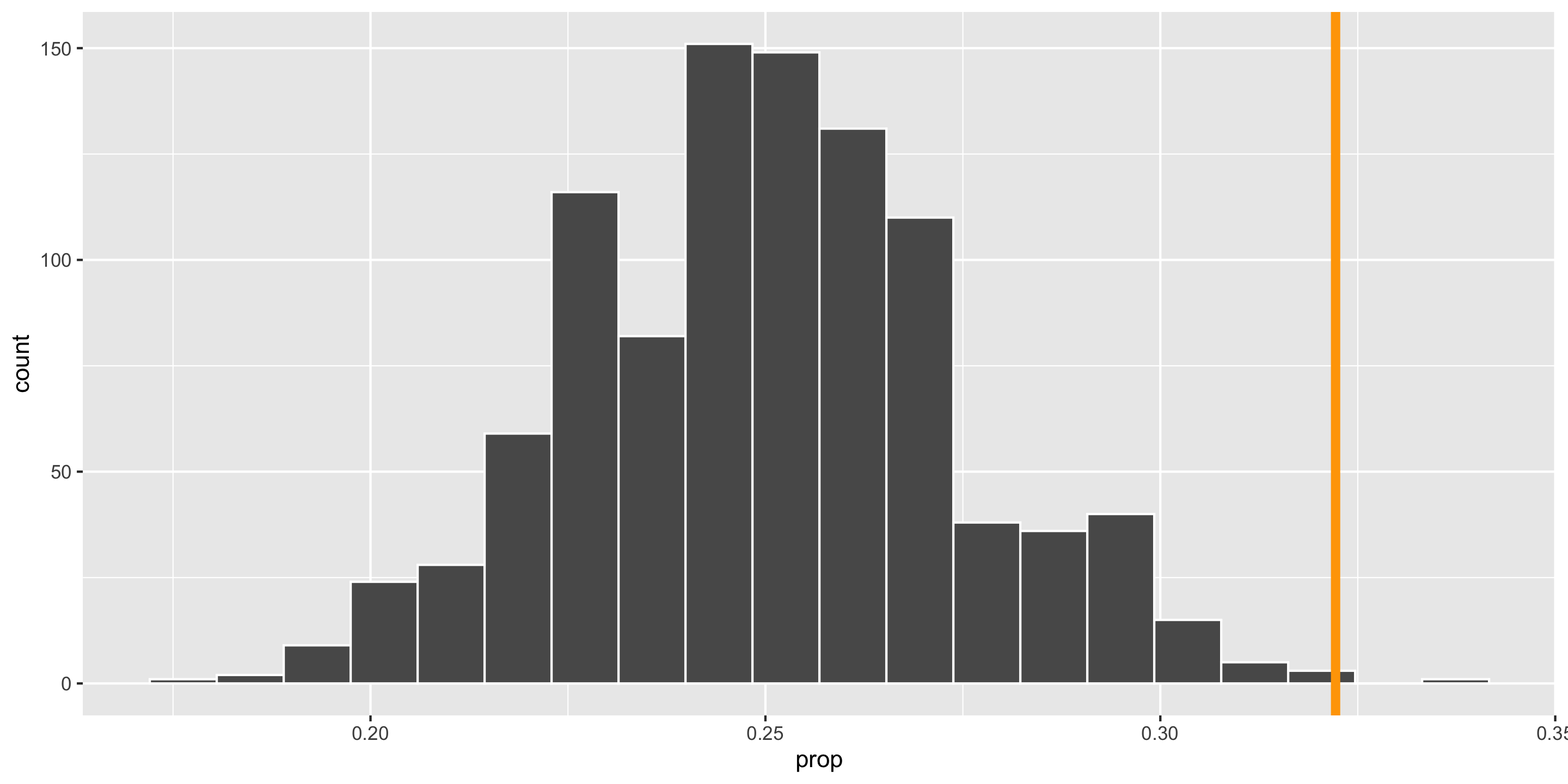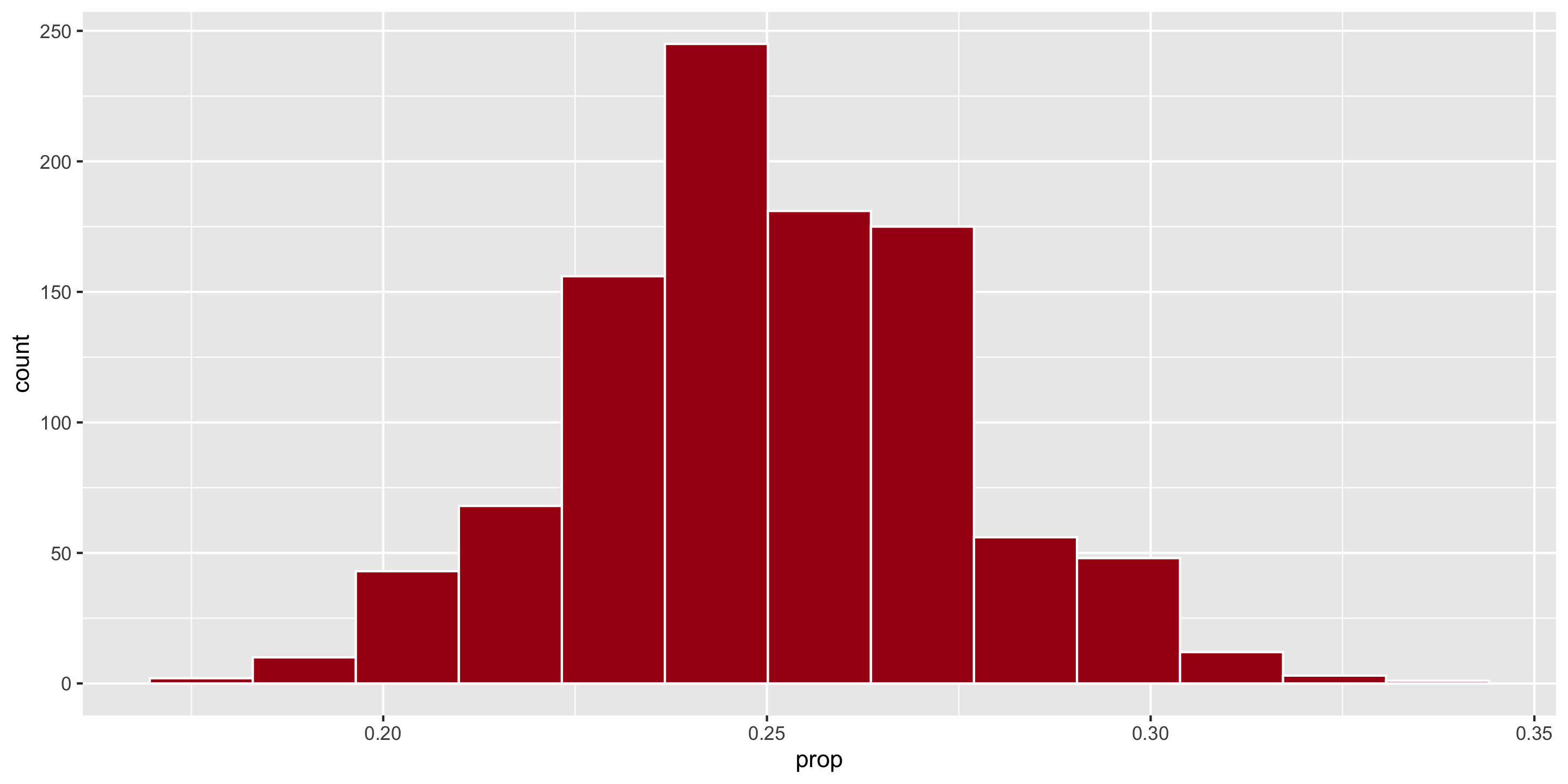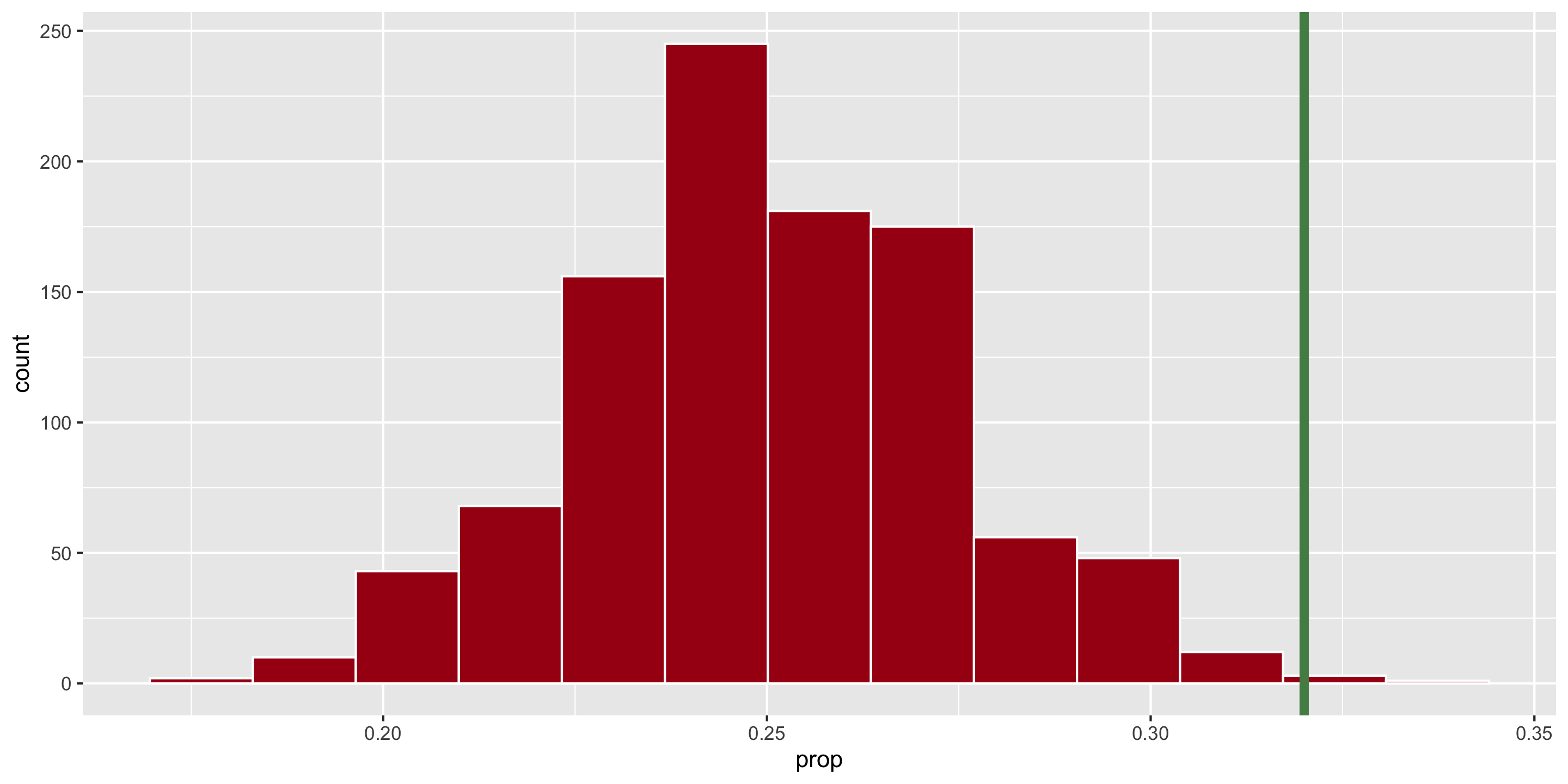 To help us answer d., we need a sampling distribution for the sample proportion where we assume the “receivers” were purely guessing!
